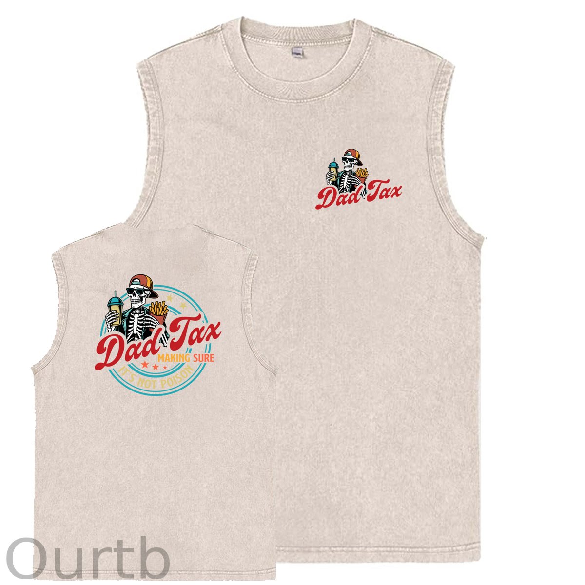 Dad Tax Pattern Sleeveless Cotton Washed Printed Loose Vest