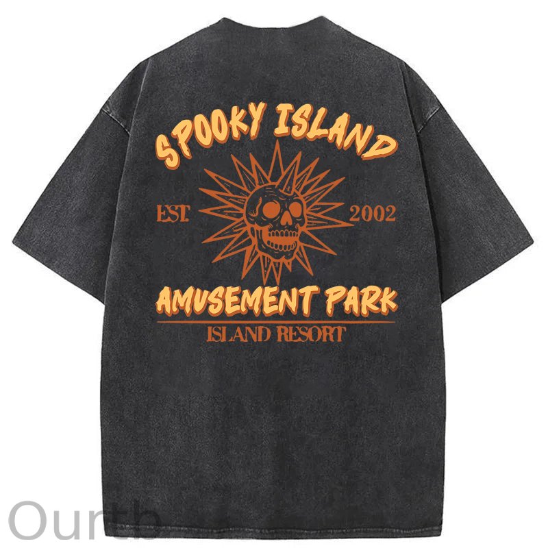 Spooky Island Cartoon Halloween Washed Cotton T-Shirt