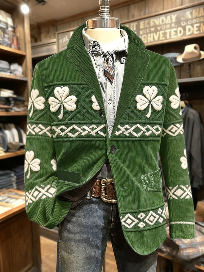 Men's Retro St. Patrick's Day Print Casual Blazer