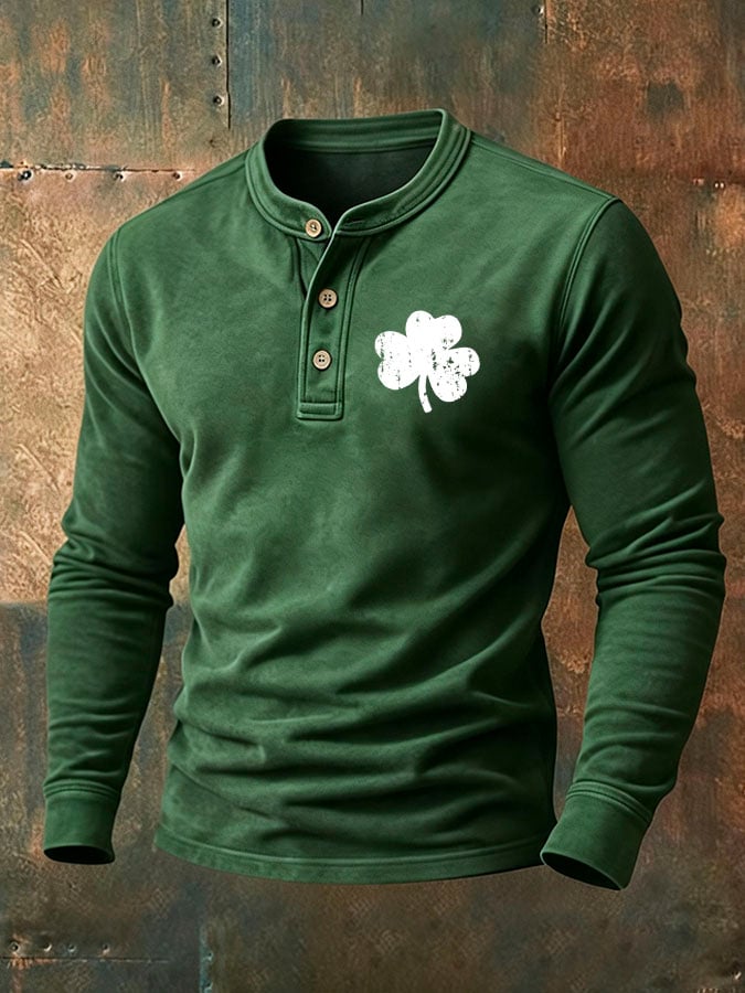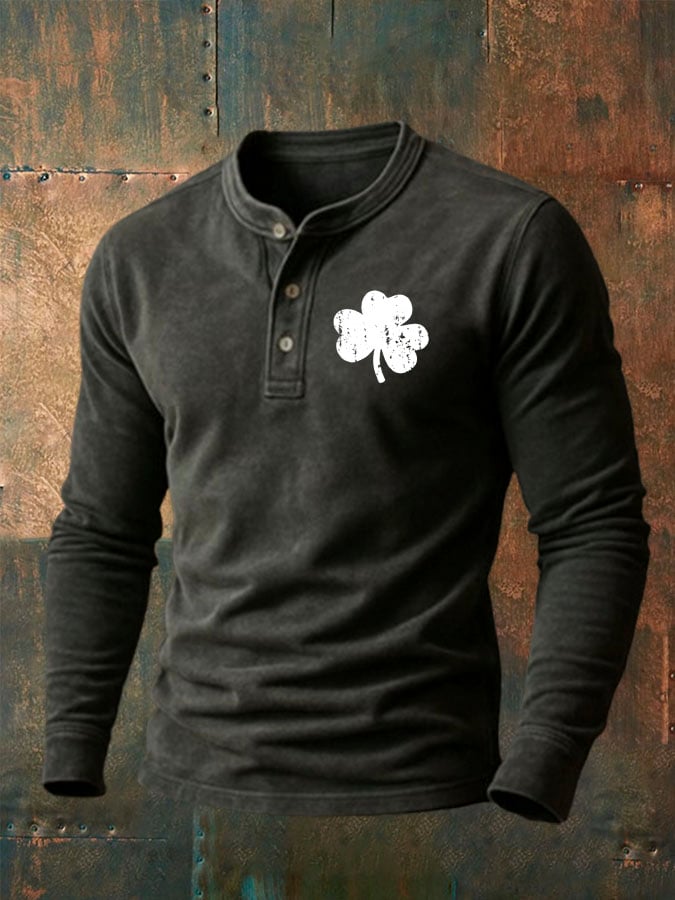 Men'S Vintage St. Patrick's Day Print Henley Neck Shirt
