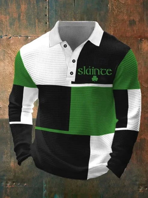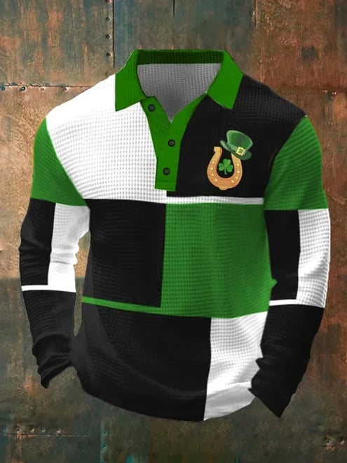 St. Patrick Men's Color Block Shamrock Waffle Polo Shirts