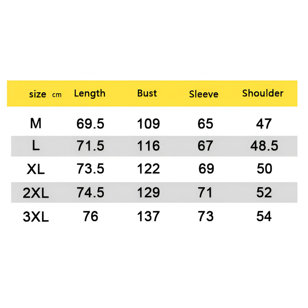 Men's Hoodie Size chart