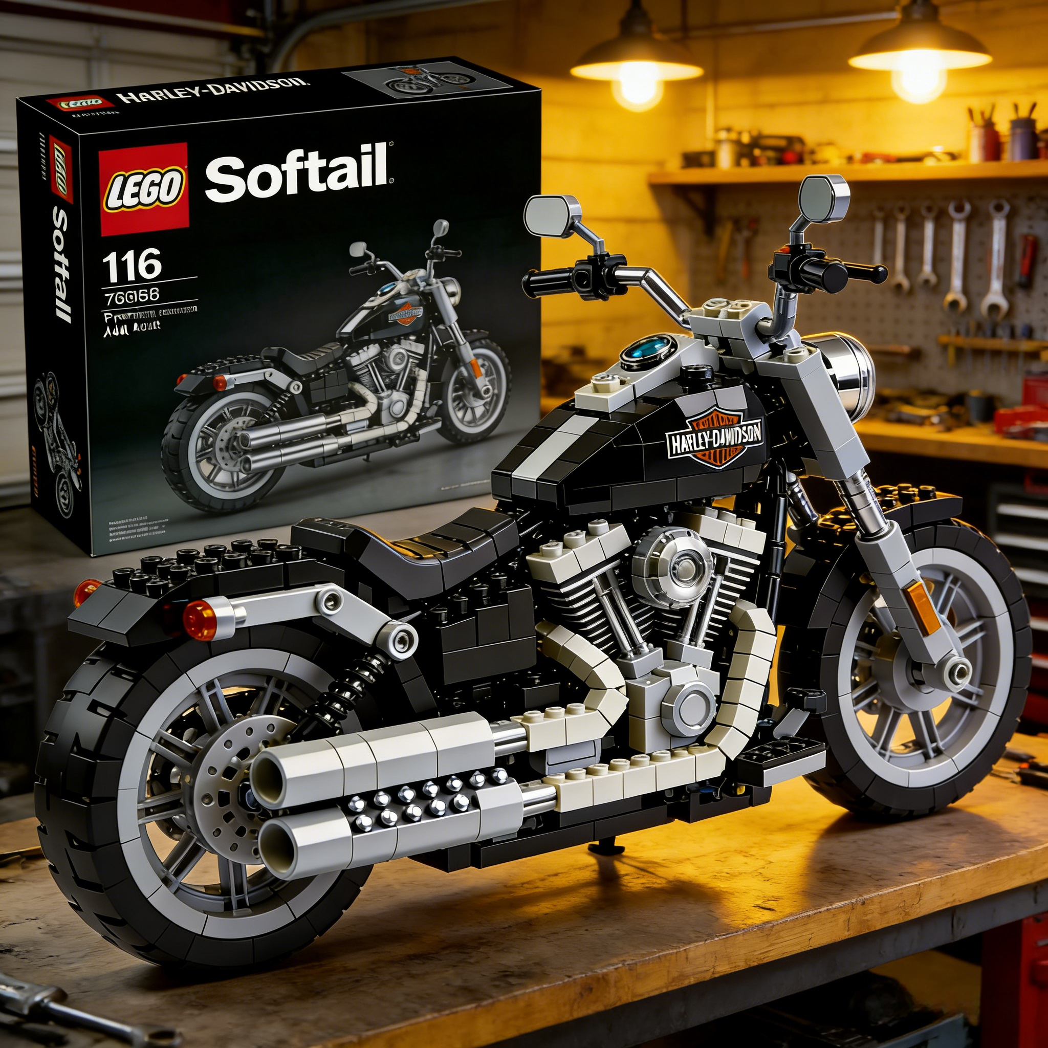 Inspired by the classic Harley-Davidson cruiser motorcycle design, this model meticulously recreates every detail: the wide front end, V-twin engine, realistic exhaust pipes, and striking body lines. The finished product is not only fun but also visually stunning.