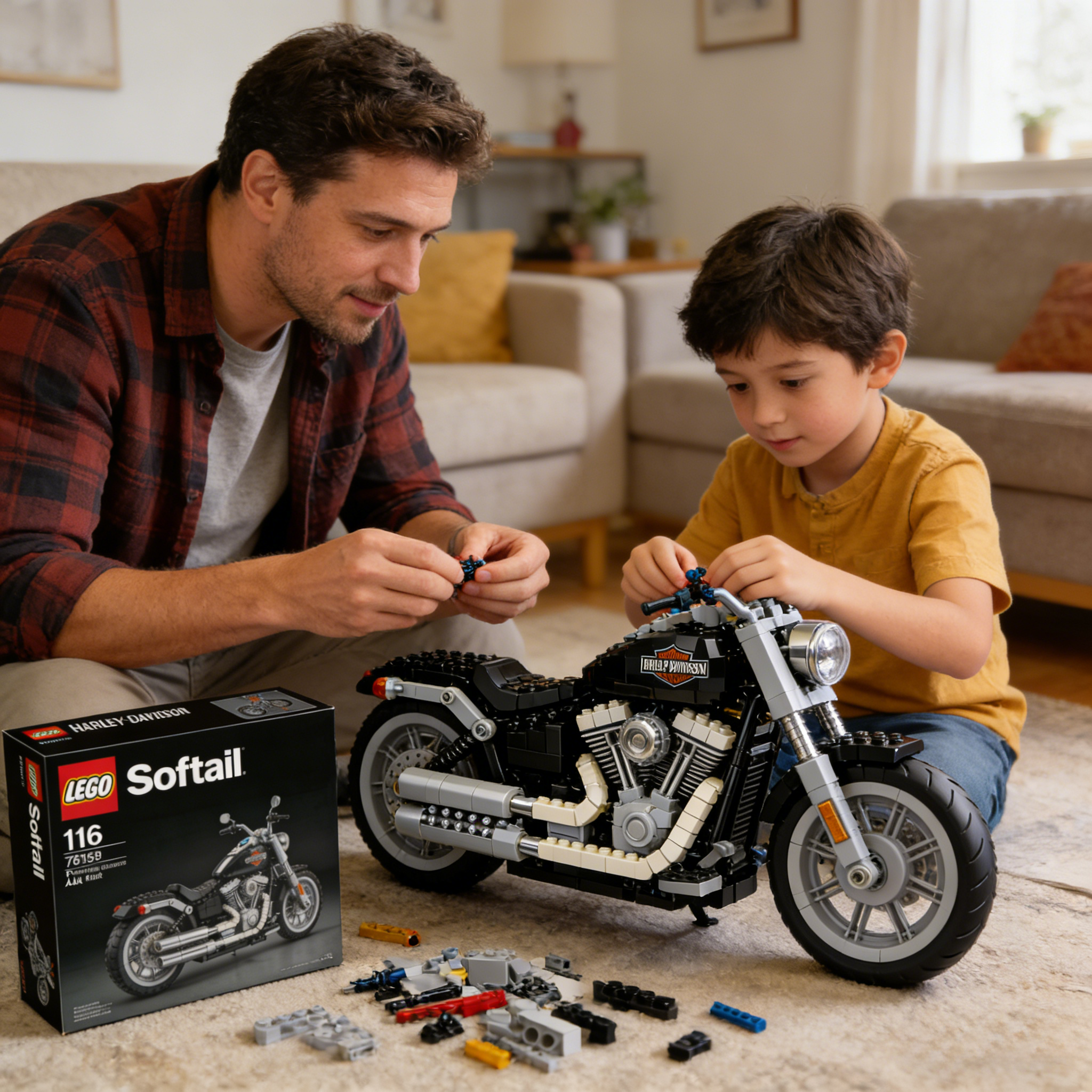 Inspired by the classic Harley-Davidson cruiser motorcycle design, this model meticulously recreates every detail: the wide front end, V-twin engine, realistic exhaust pipes, and striking body lines. The finished product is not only fun but also visually stunning.