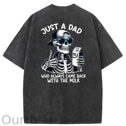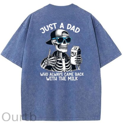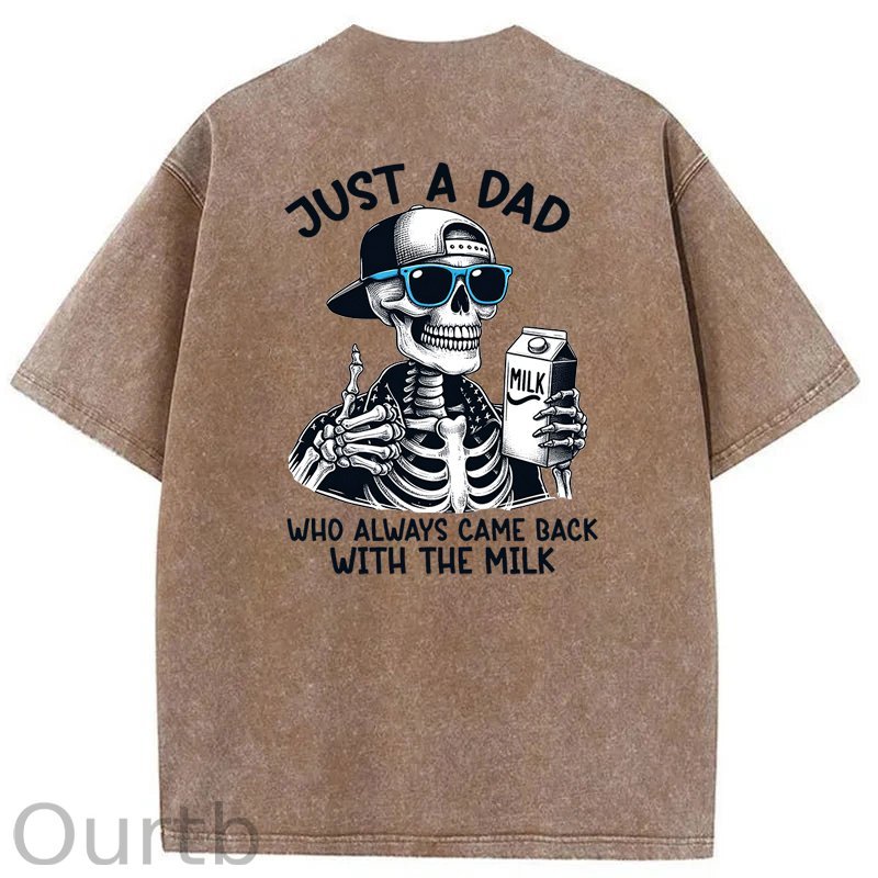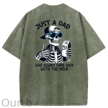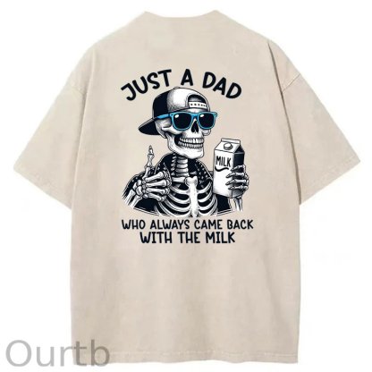 Just A Dad Who Always Came Back With The Milk Washed T-Shirt