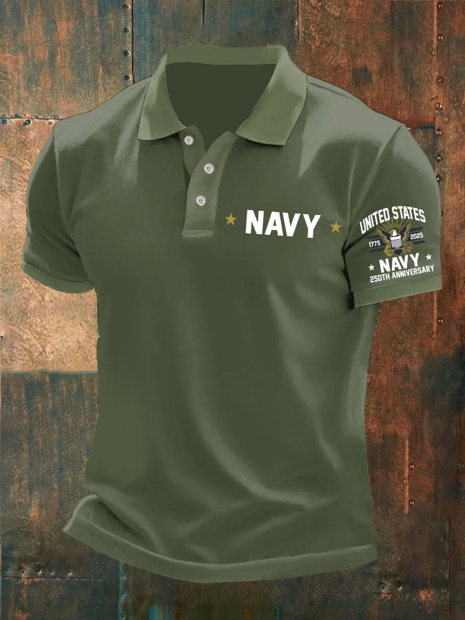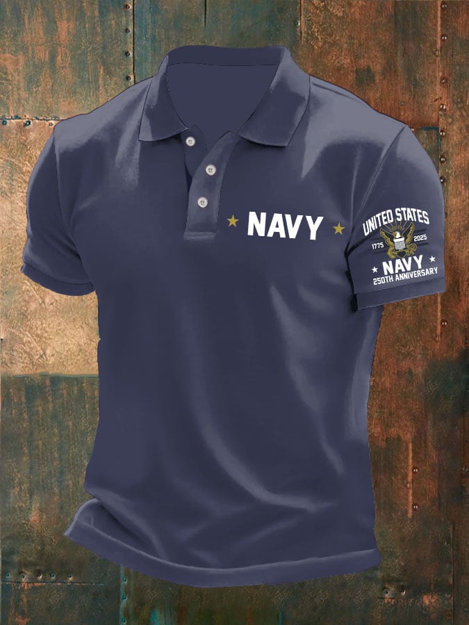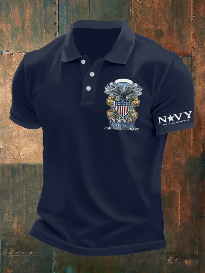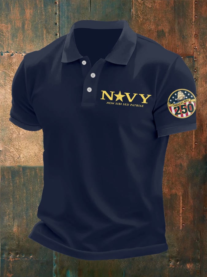 Man's Vintage America's Navy 250th Anniversary Non Sibi Sed Patriae Printed Polo Shirt