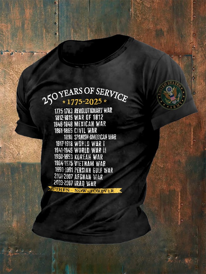 Men's United States Army 250 Years Of Service 1775-2025 Then - Now - Forever Print T-Shirt