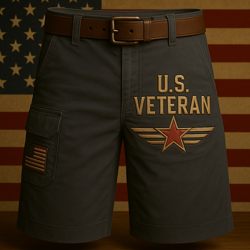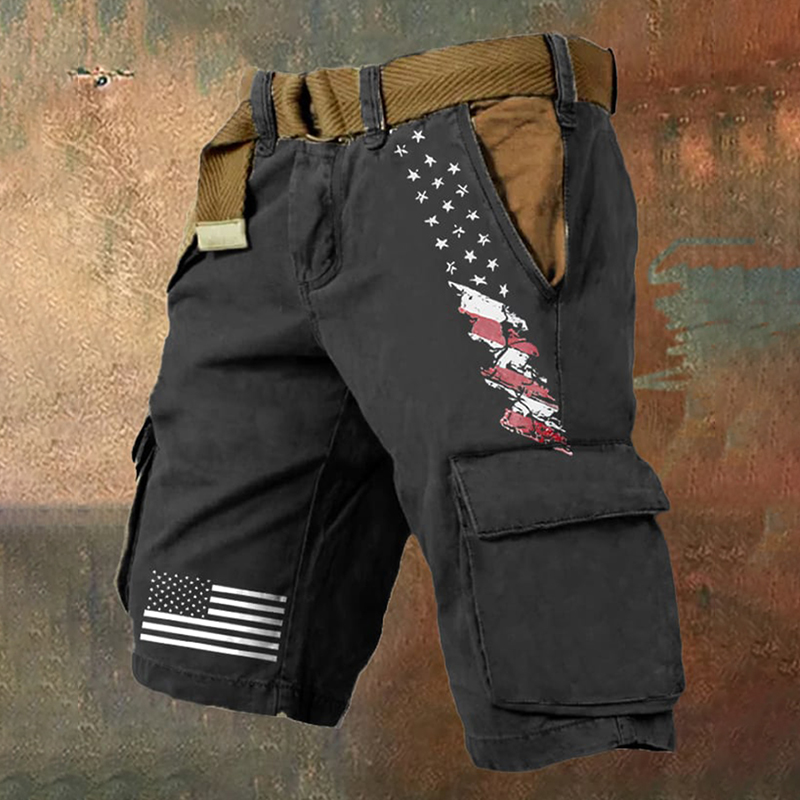 Men's Vintage Flag Multi-Pocket Print Cargo Shorts