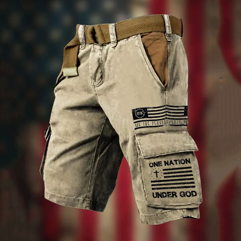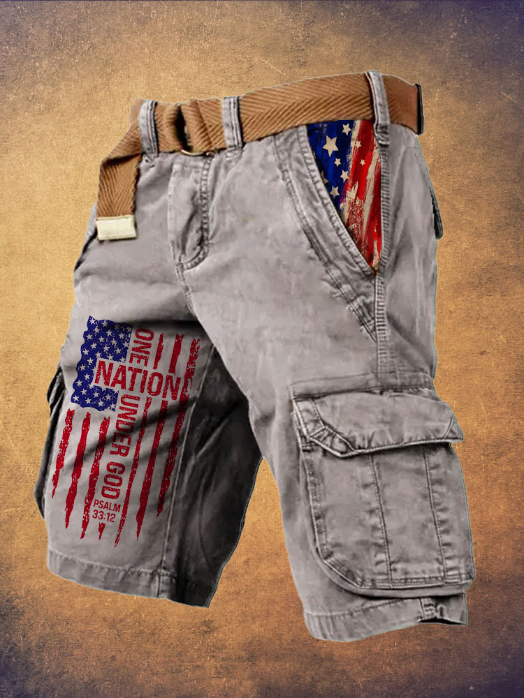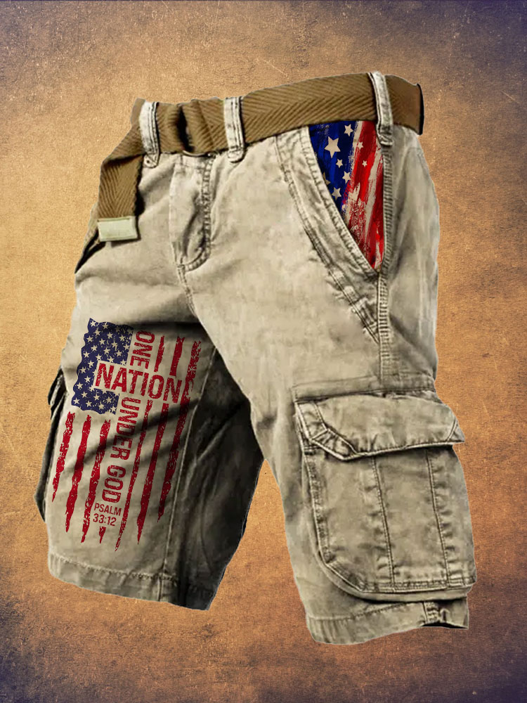 Men's Flag Independence Day One Nation Under God Print Cargo Shorts