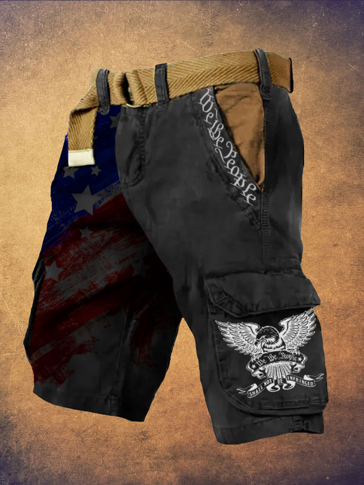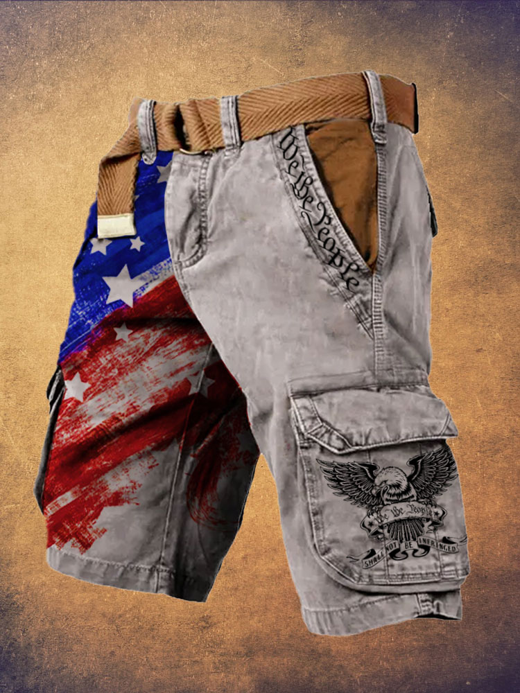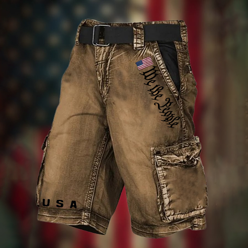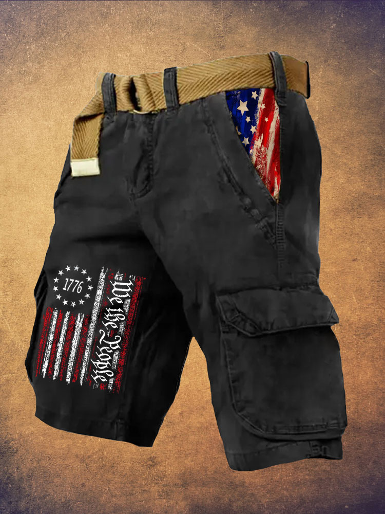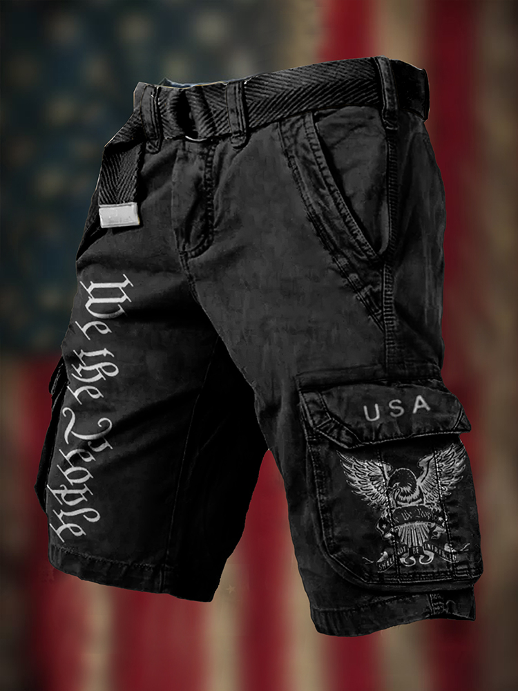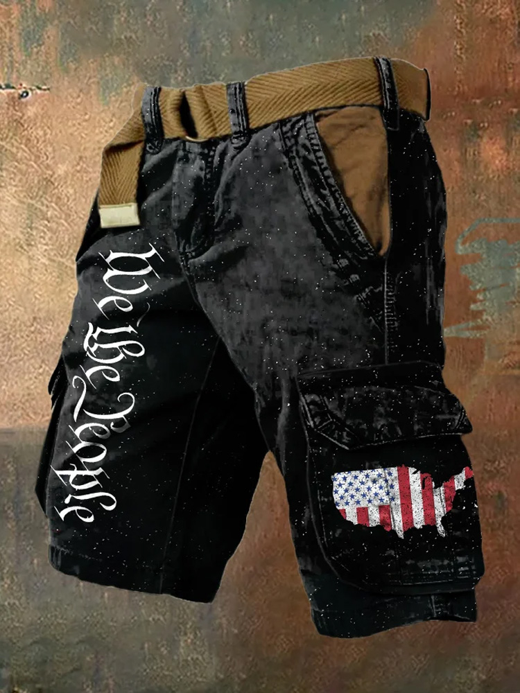 Men's Independence Day We The People Print Retro Cargo Shorts