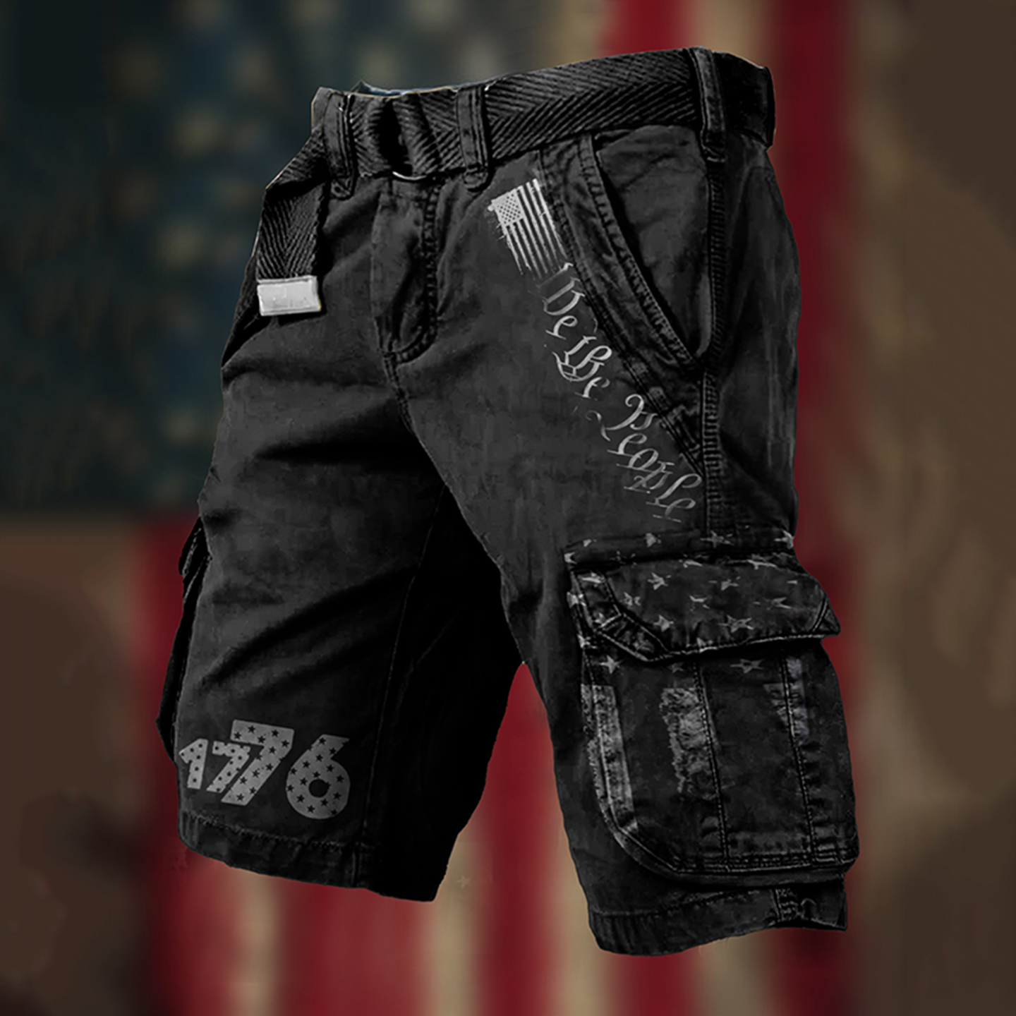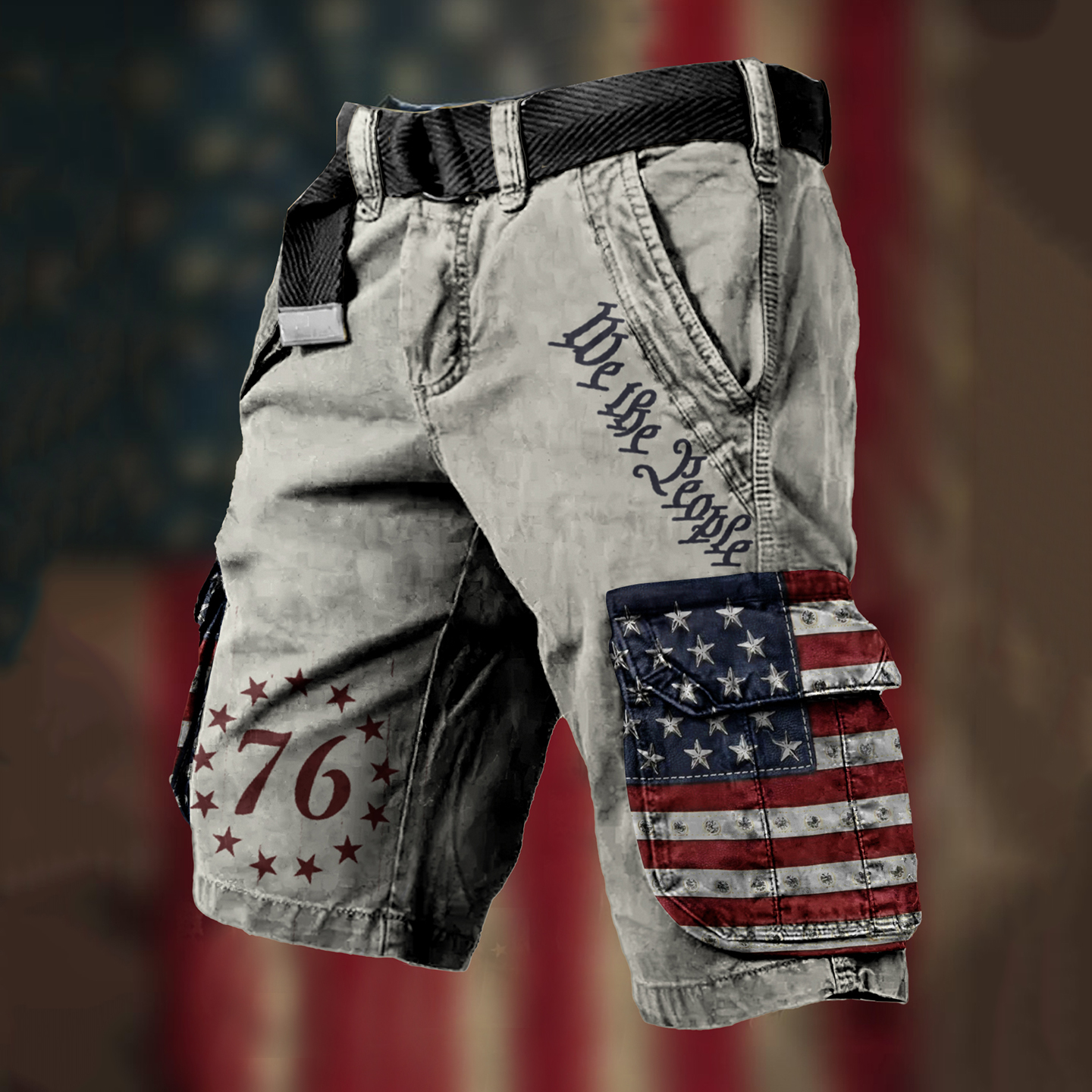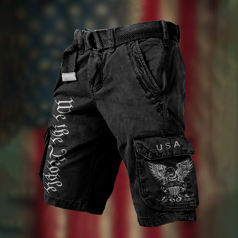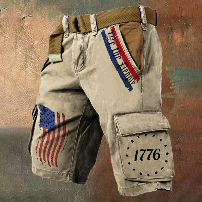 Men's Independence Day We The People Print Retro Cargo Shorts