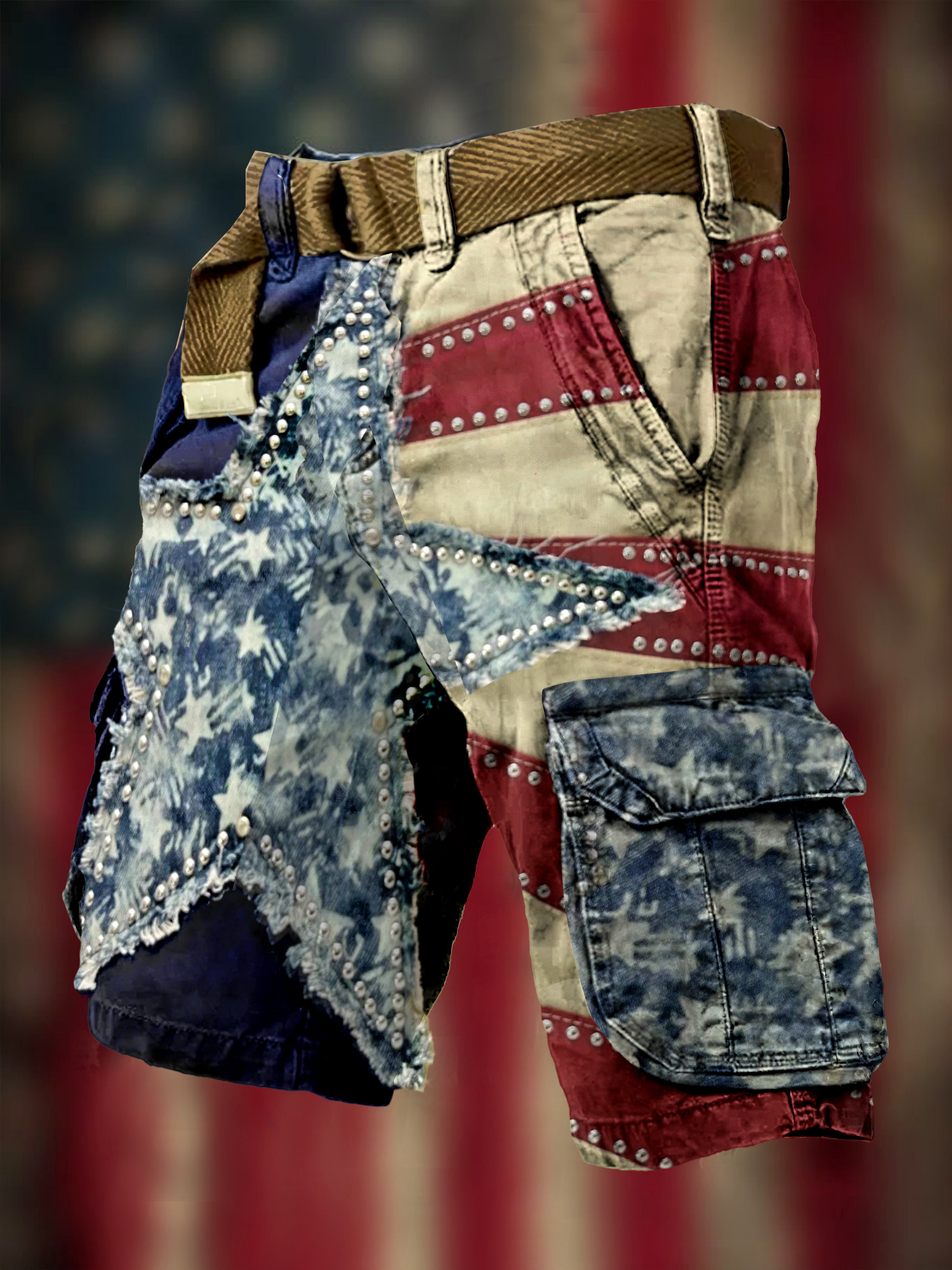 Men's Vintage Flag Independence Day Flag Patchwork Patch print Cargo Shorts