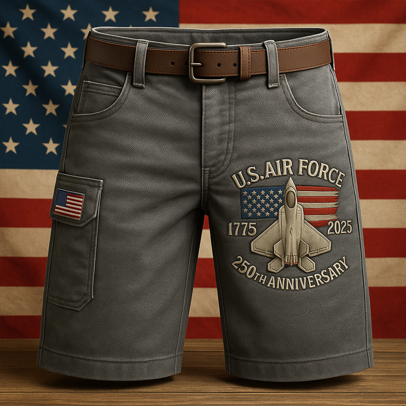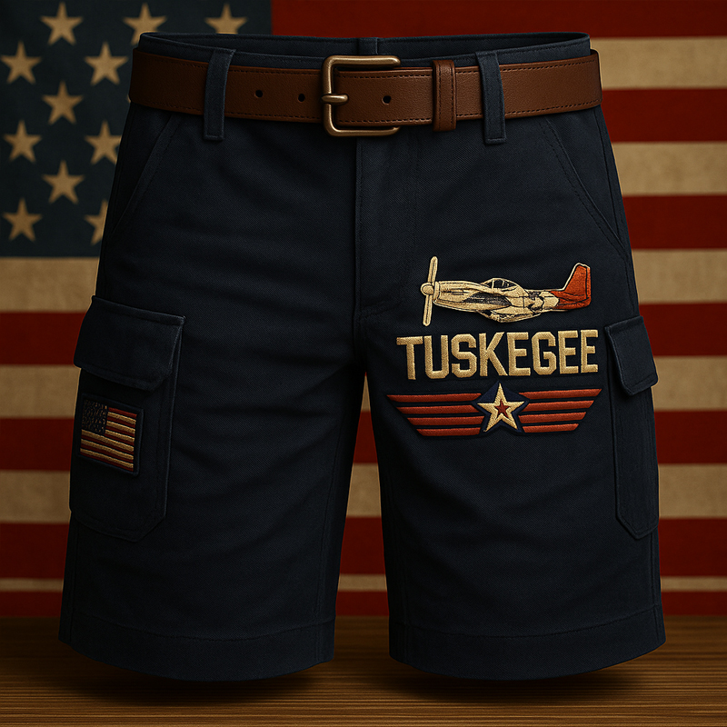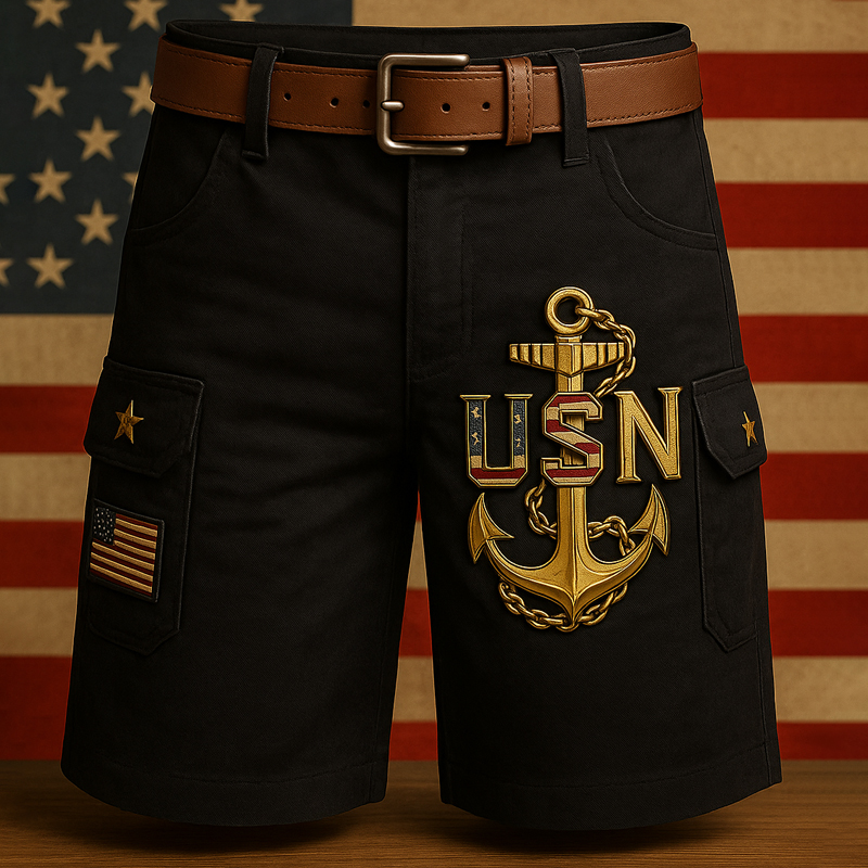 Men's Retro God Bless America Print Cargo Shorts