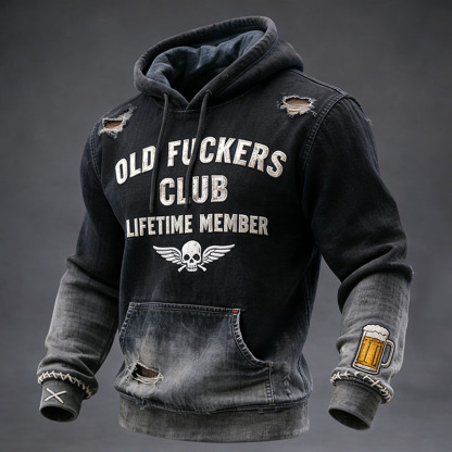 100% Bitter Old Fuckers Club Lifetime Member Vintage Print Casual Hoodie