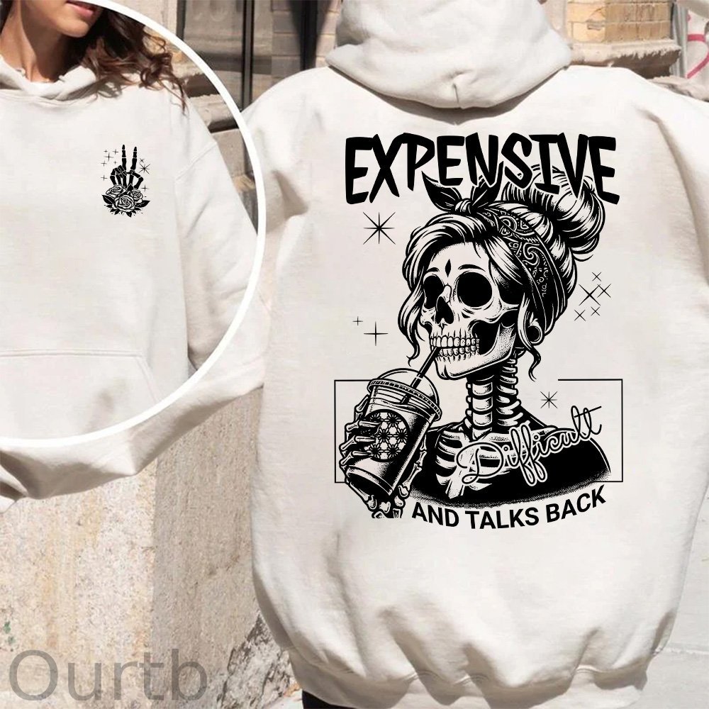 Expensive Difficult And Talks Back Sweatshirt, Trendy Front And Back Sweatshirt, Funny Women Hoodie,Sarcastic Wife Sweatshirt, Gift For Her
