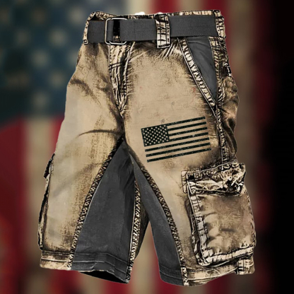 Men's Retro Flag Independence Day Contrast Multi-Pocket Print Cargo Shorts