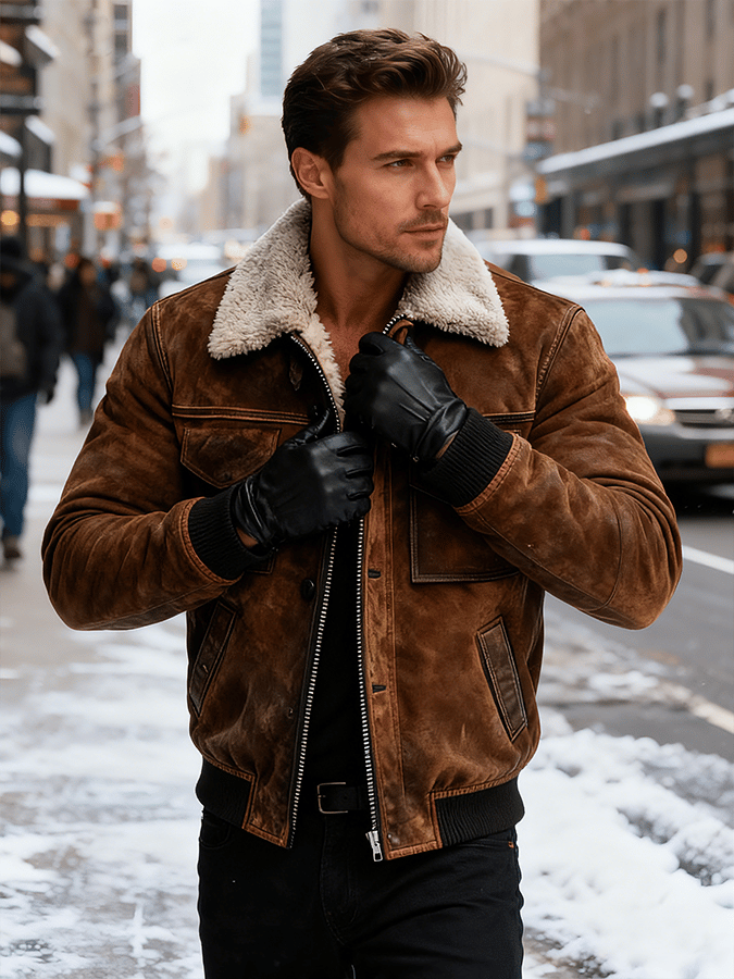 Men's Retro Woven Pure Cotton Twill Multi-pocket Fleece-lined Outdoor Jacket