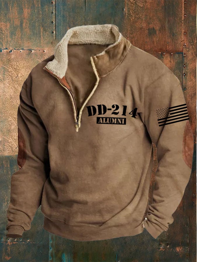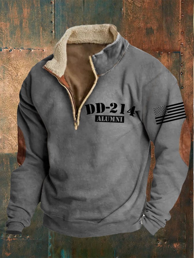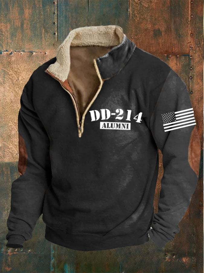 Men's Veterans DD-214 Zipper Collar Long Sleeve Sweatshirt