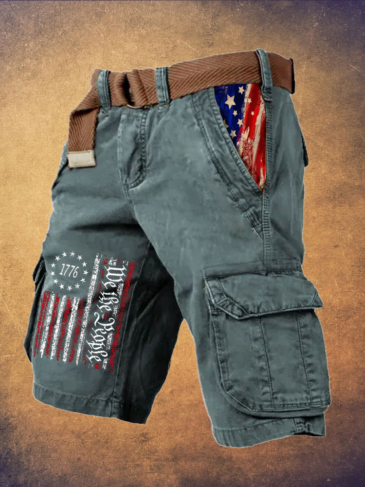 Men's Vintage Flag Independence Day We the People Print Cargo Shorts