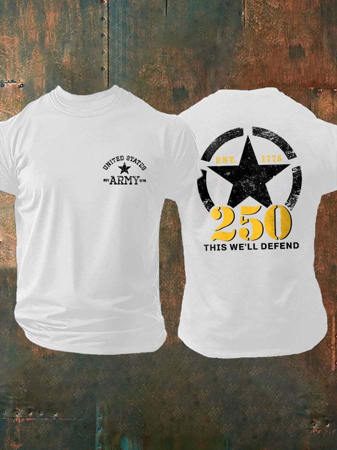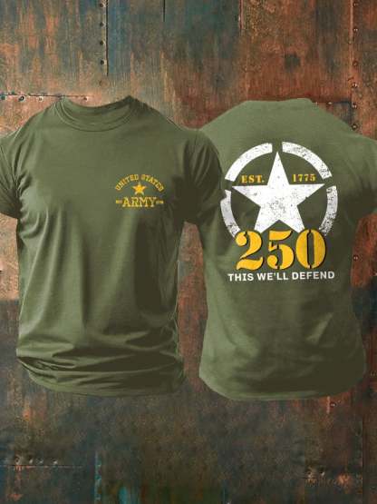 Retro Man's Vintage Independence Day United States Army 250th Anniversary This We'll Defend Print T-Shirt