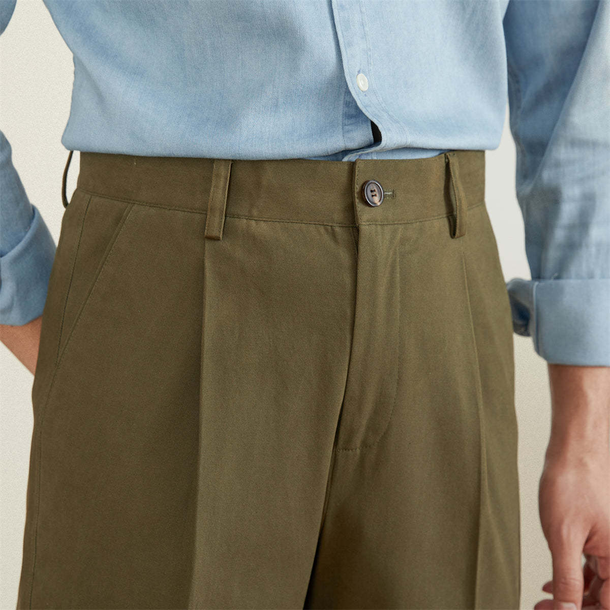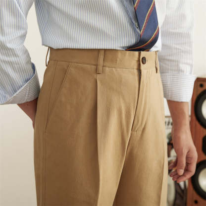 Semplice Cotton Pleated Straight Fit Trousers