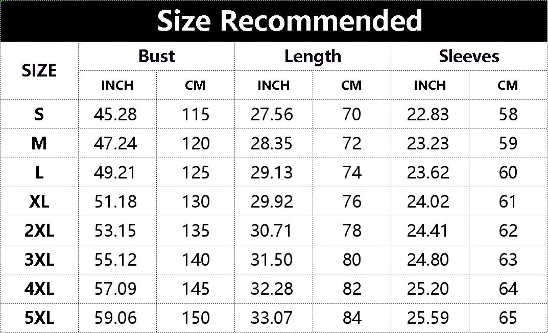 Men's Hoodie Size chart